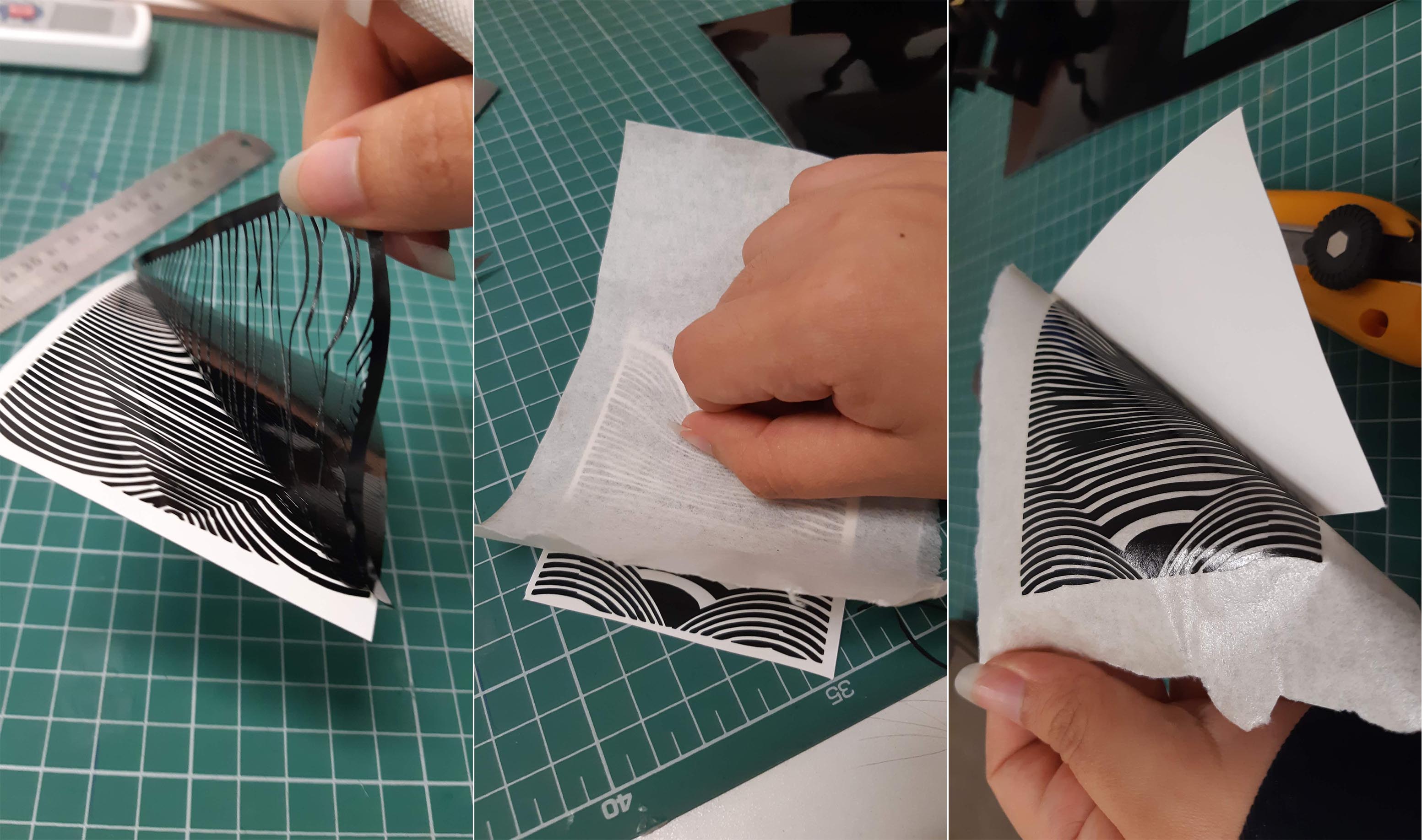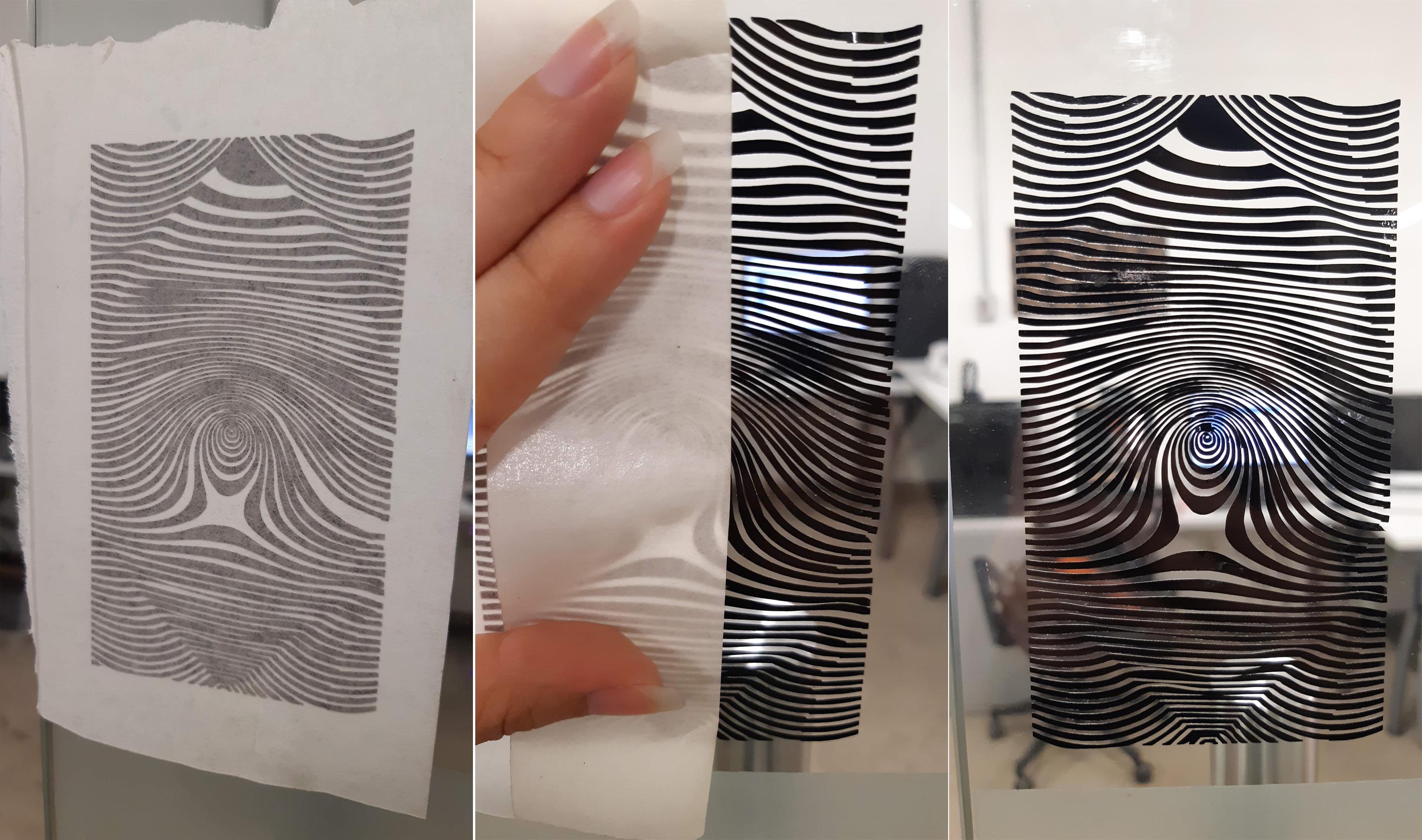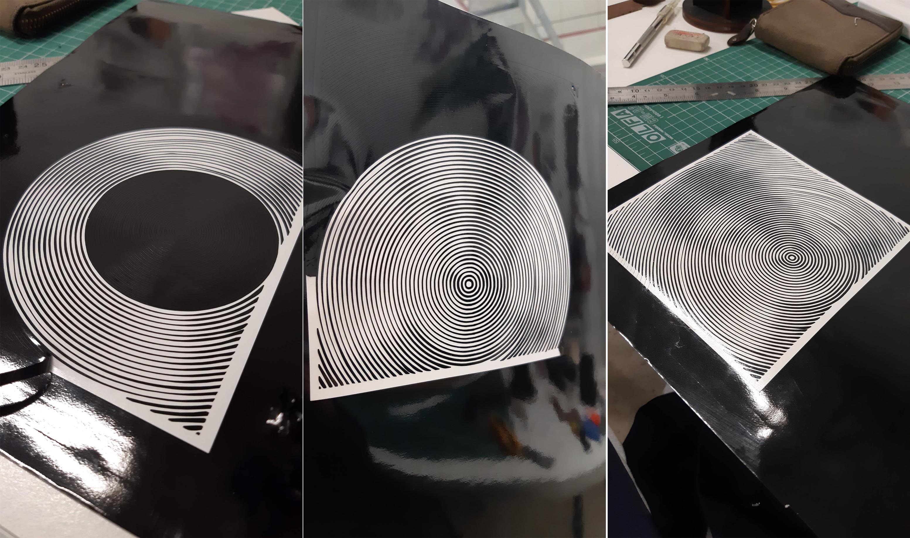 Process is really fast once I had it in my hands I just took off the excedent material (the negative). It was very tricky, the vinyl started attaching to and pulling away some parts that I needed for the image to be complete. I fought against it and finnaly won