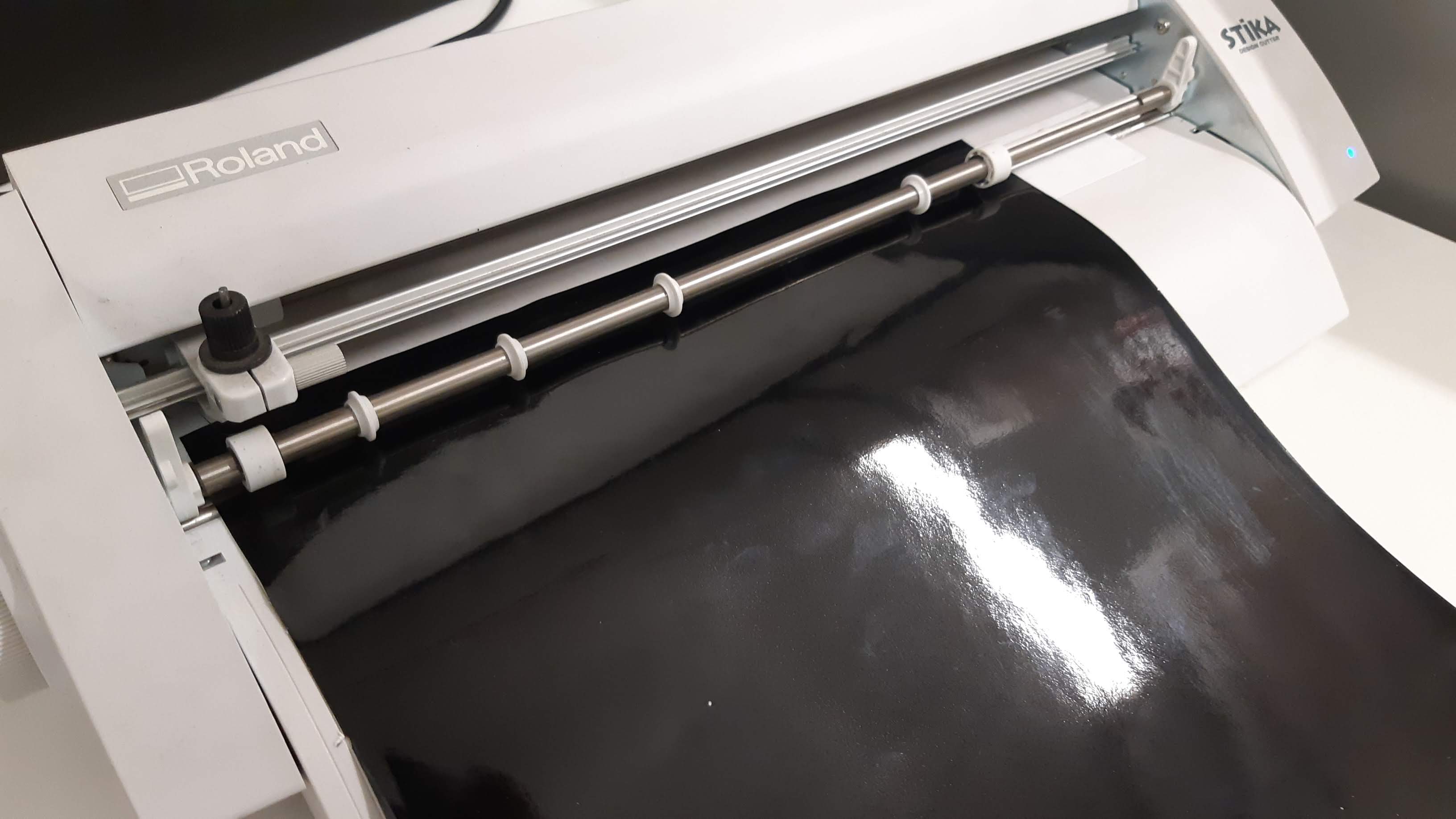 The machine for this assignment is a Roland SV - 15. It has a maximum cutting area of 340 x 1000 mm. The acceptable material to use is PVC or label material of a maximum of 0.1 mm and including the backing 0.3 mm.