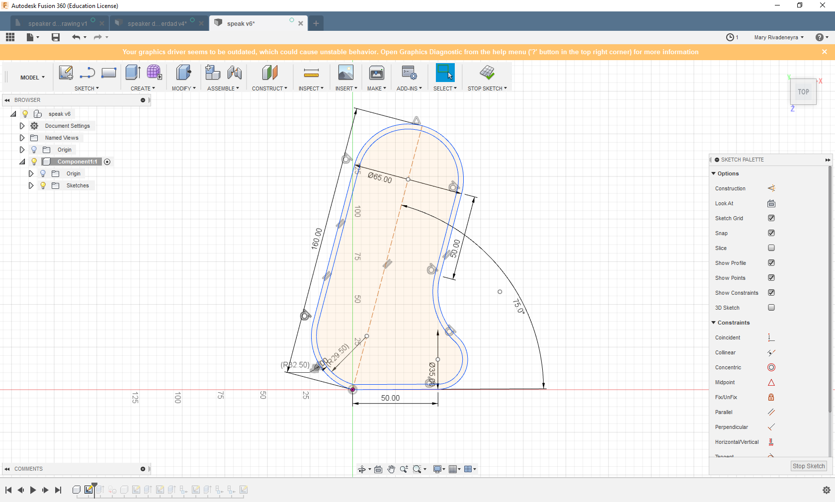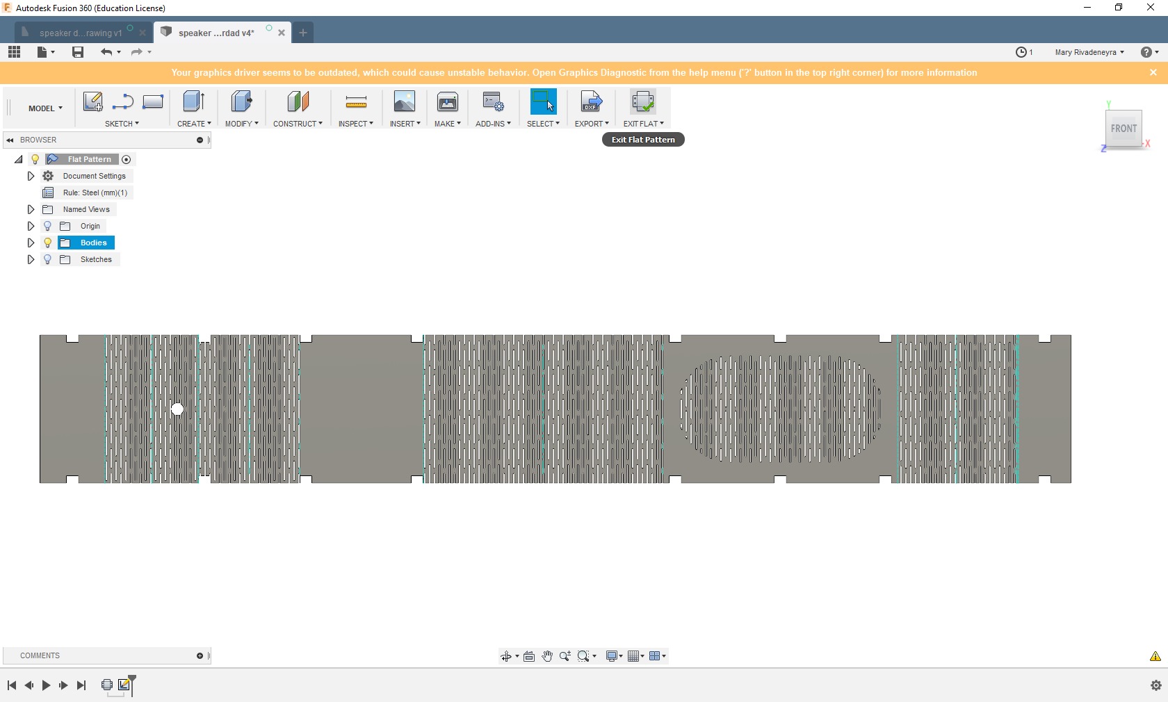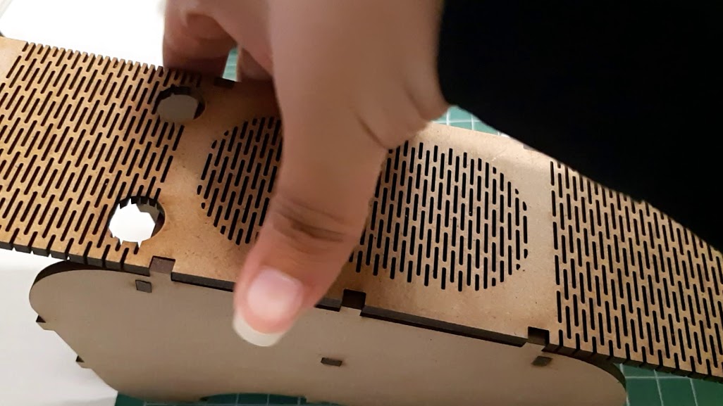 Once I had the flexibility I wanted, I designed all the cuts and gaps according to the profile, checking where it would bend and where the speaker would be.
