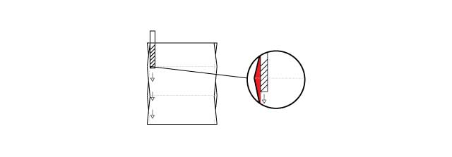 In the next image I show how the cutting tool goes down but is no able to make the angle of the model. The red part is the part that is not machinable. In a 3 axis machine, neither the internal nor the external surface angles are possible to machine.