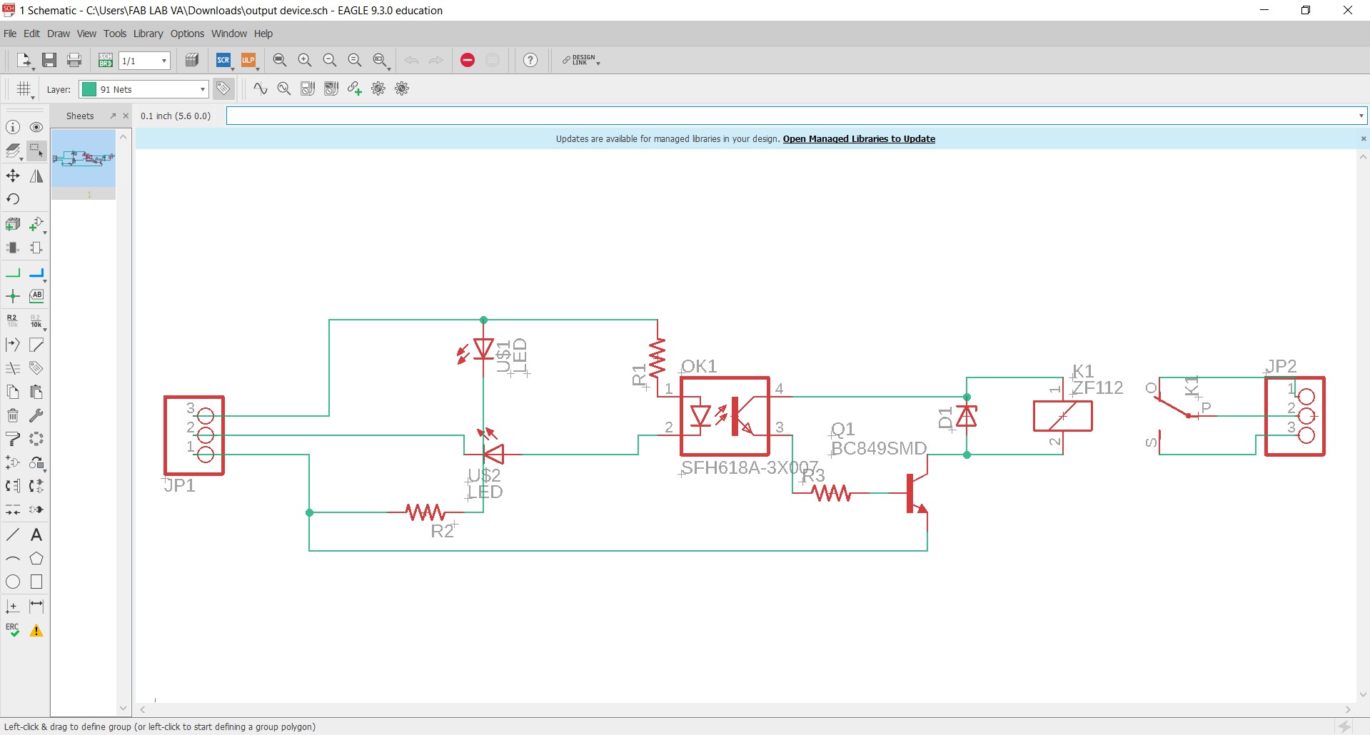 The next step is to design this relay board in EAGLE software. The required components are listed down below: