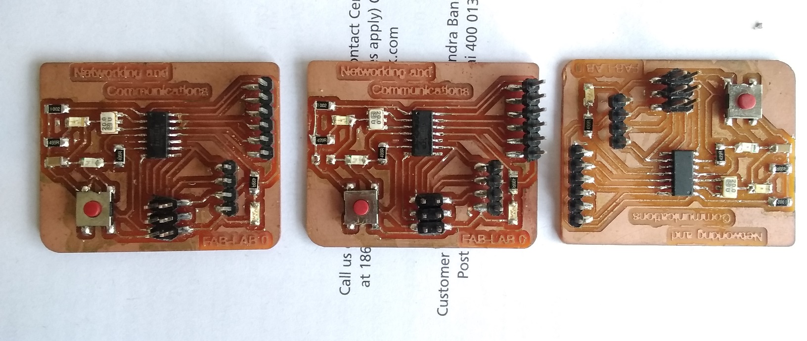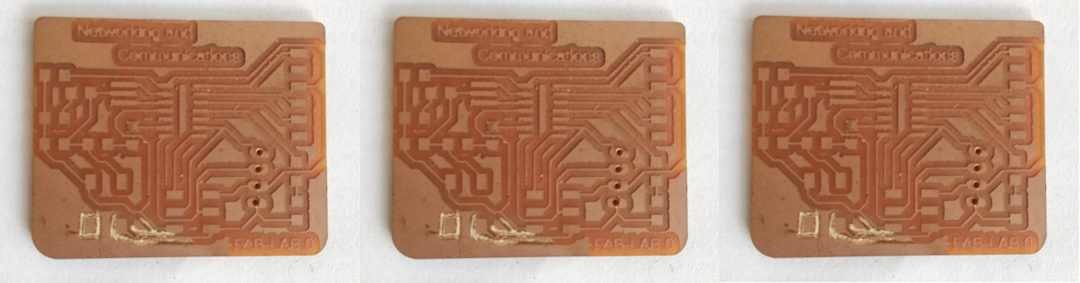 Now the design file from the EAGLE is ready. Next step is to mill the circuit board on SRM 20. Complted three boards, one is master and another two as a slave, are shown in below: