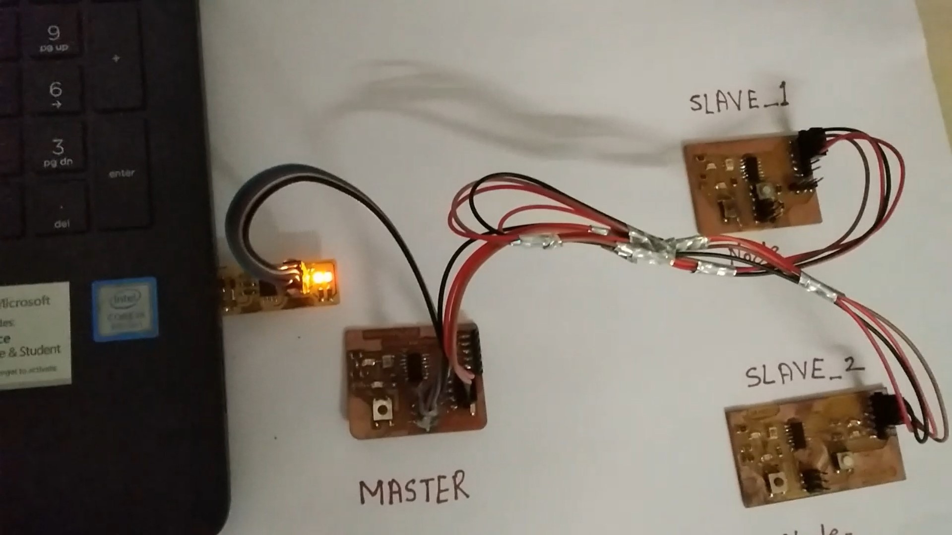 Once all the components are soldered the board is ready to test now. For the testing I have to do connections between master and salves. Following figure is shows connections between master and slaves: