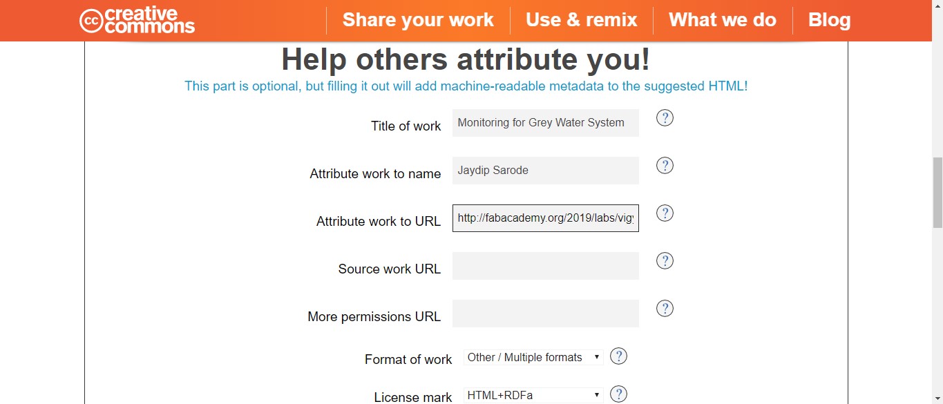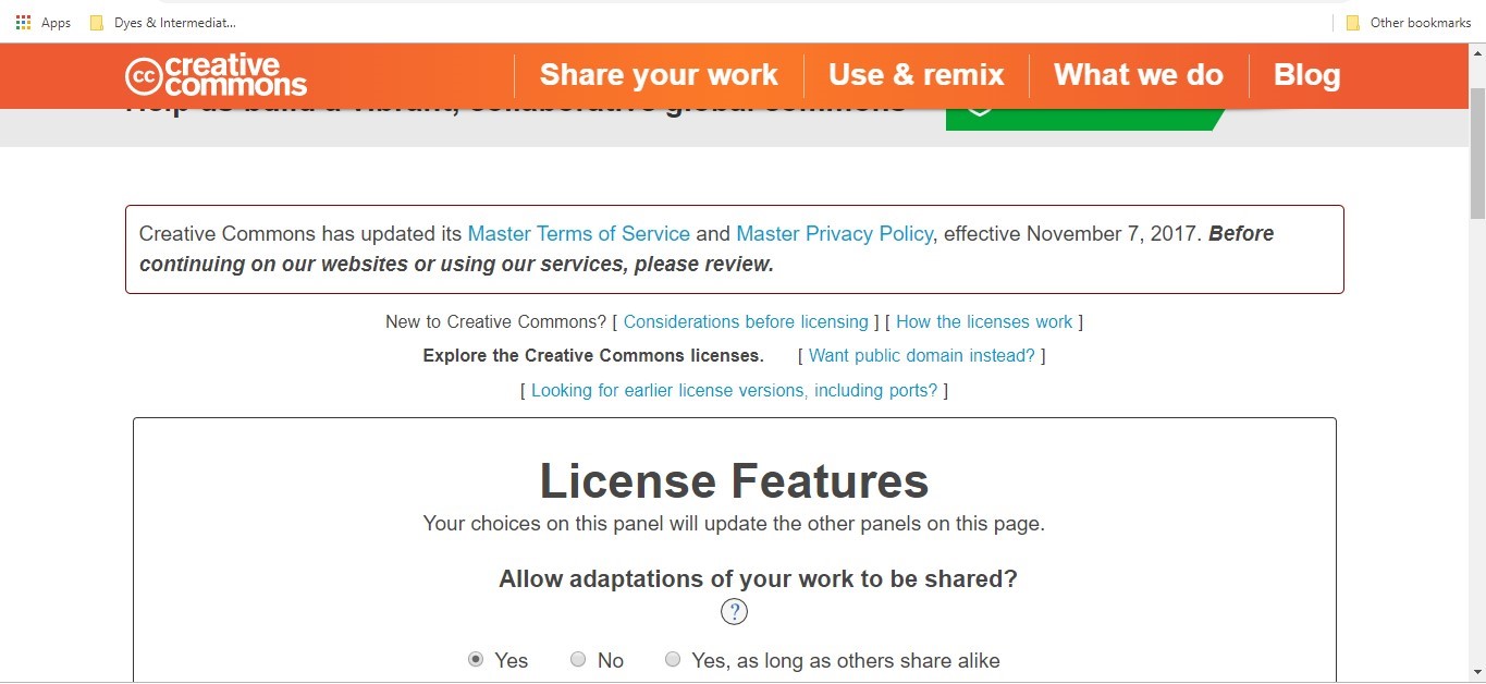 Opened the Creative Commons website for license and allowed adaptation for my work to be shared.