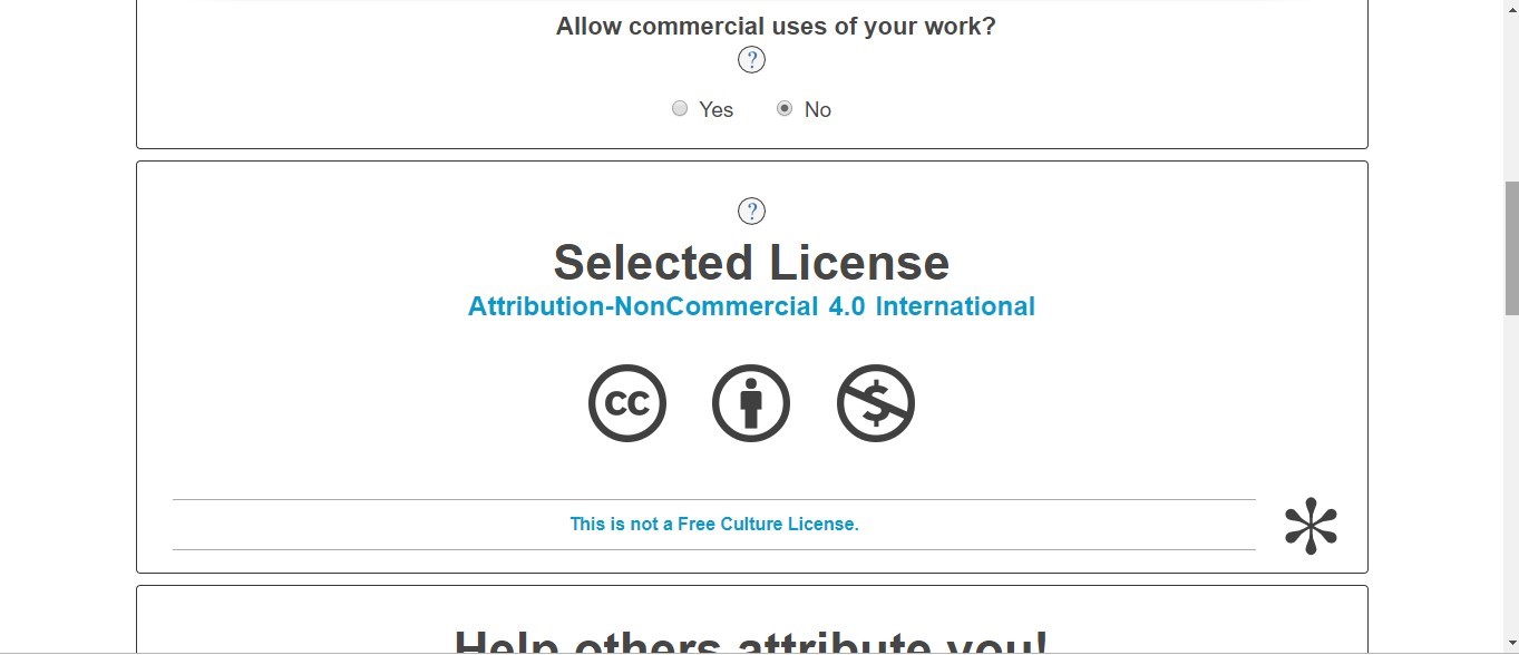 Didn’t allow the commercial use of my project work and it showed selected license- “Attribution-NonCommercial 4.0 International”.