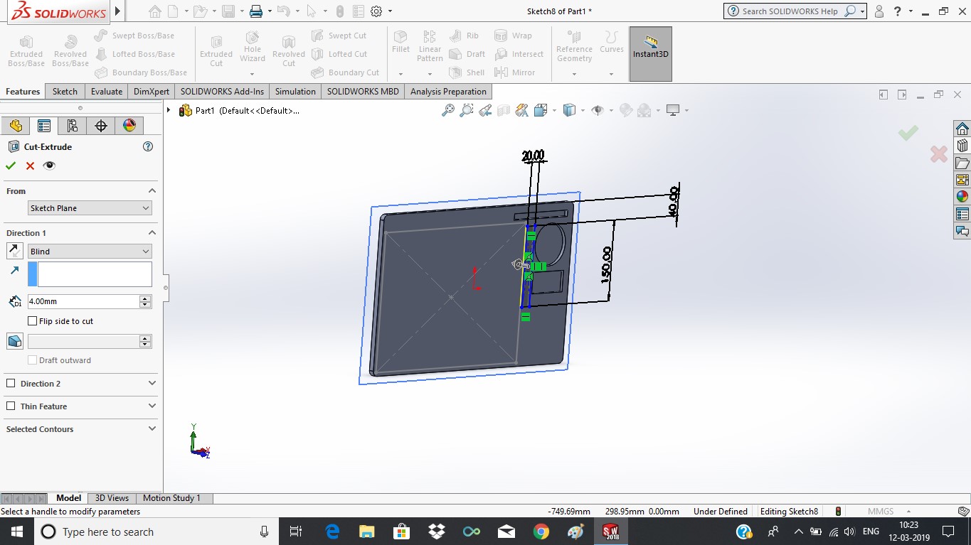 I am going to design laptop table in solid works software. I decided dimensions of laptop table would be 450mm X 300mm.