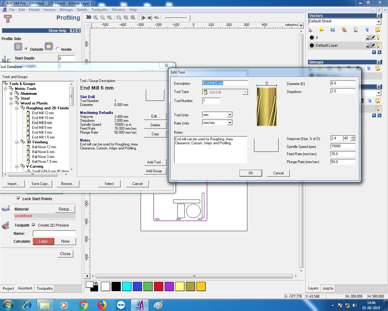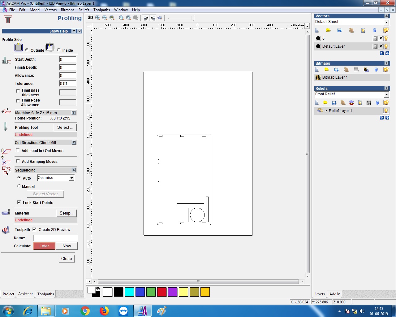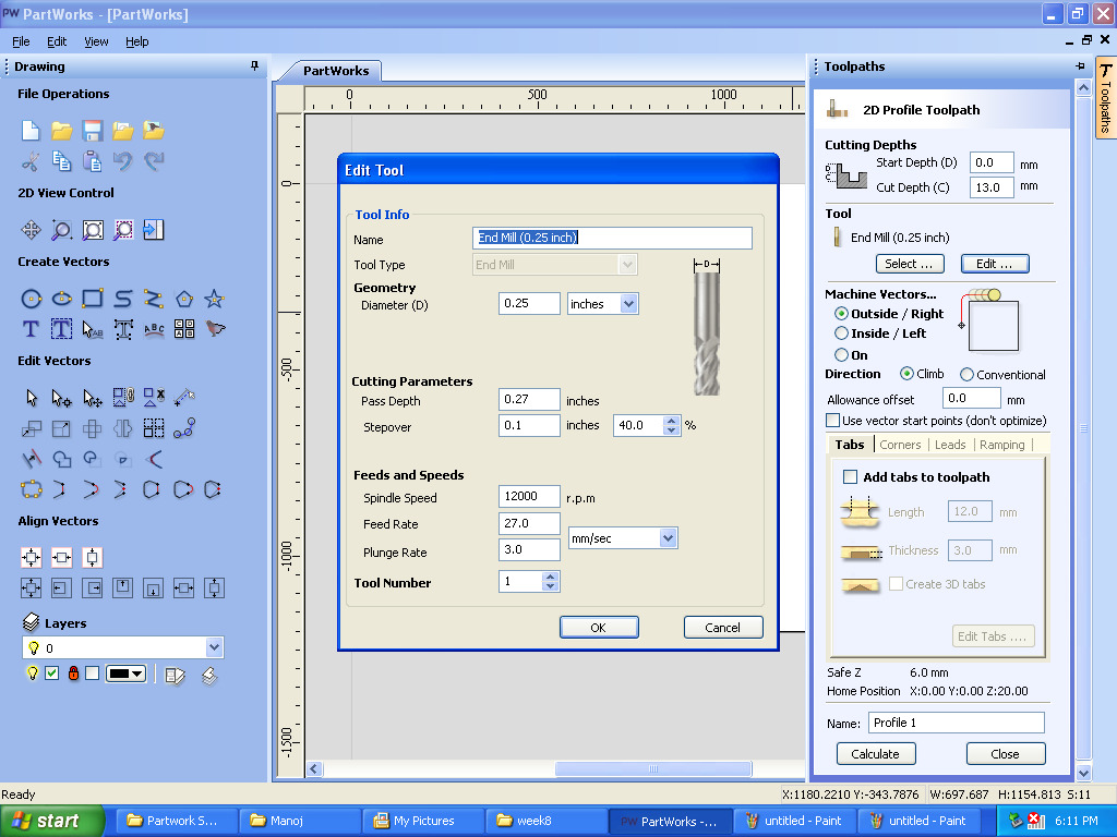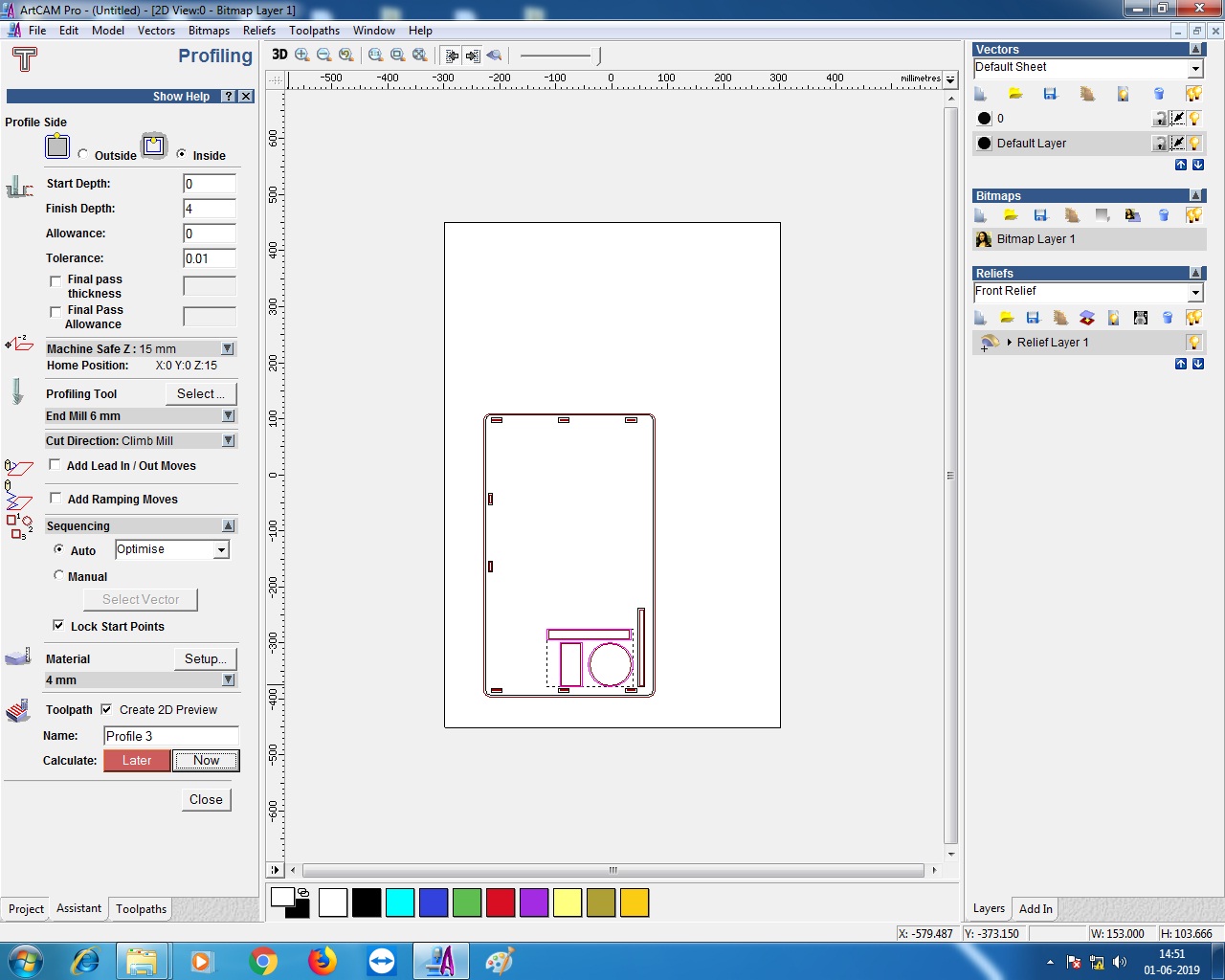 Making another profile for toolpath. And also did the for milling Bit selection for inside profile.