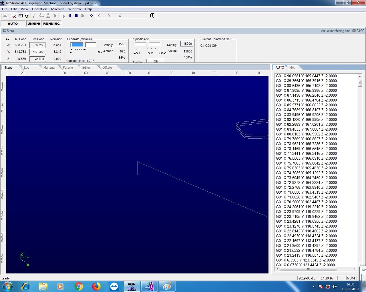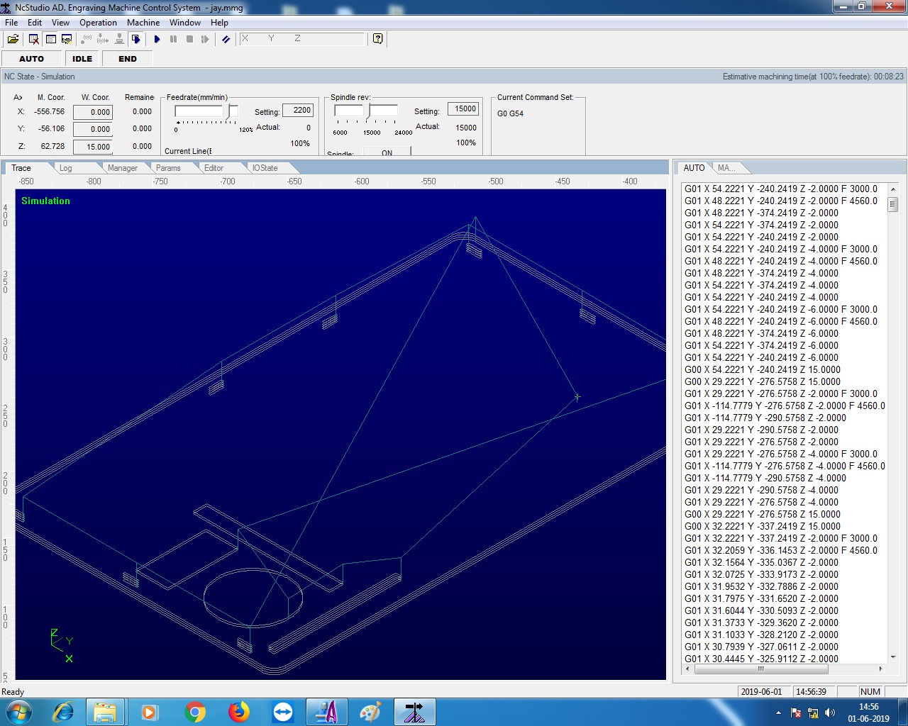 All toolpath generated successfully. Now, going to machine software 'Nc Studio AD. Engraving Machine Control System'.