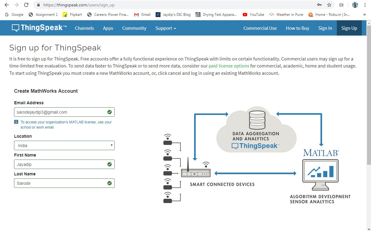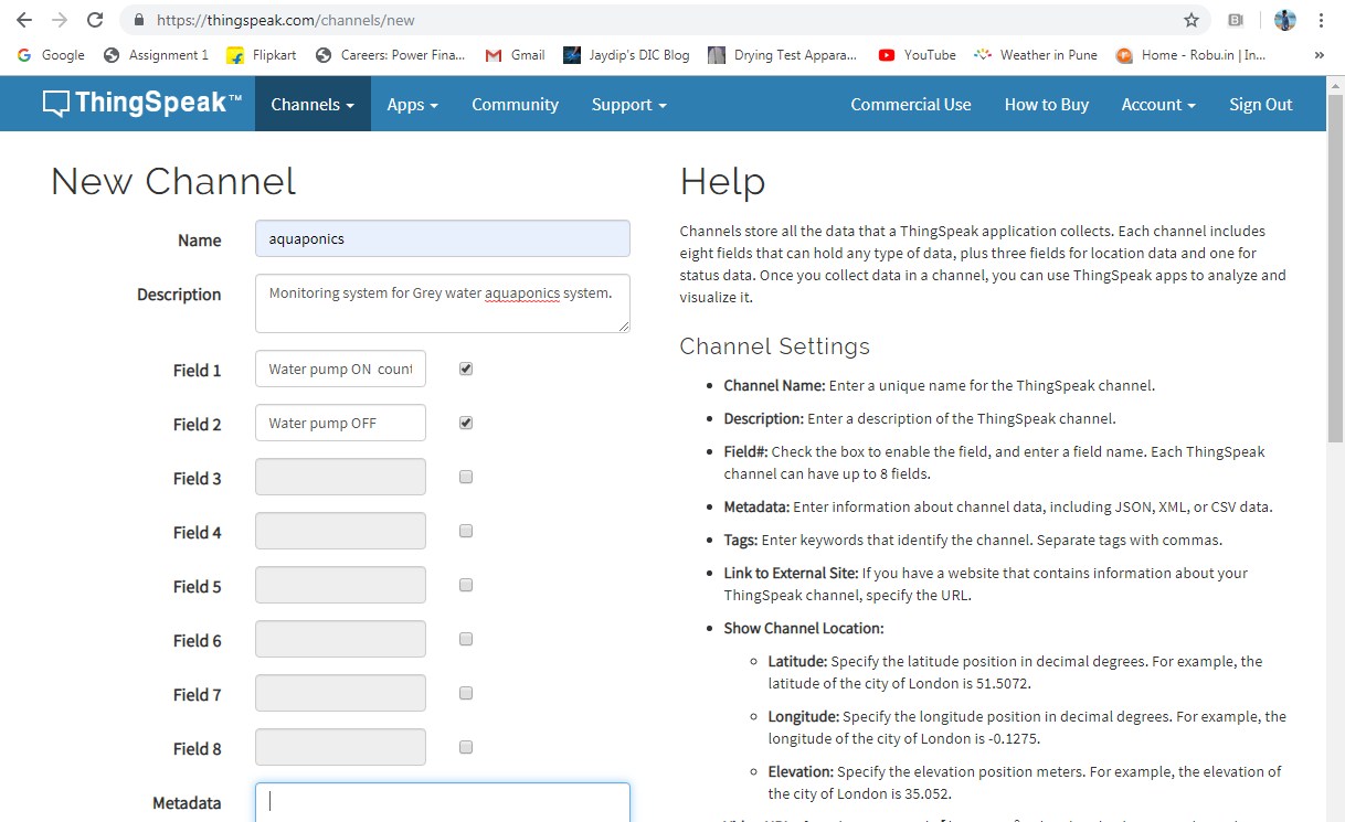 On Thingspeak we have to sign up and create channel which gives us details of channel ID and wifi key. This is to be used in the wifi code.