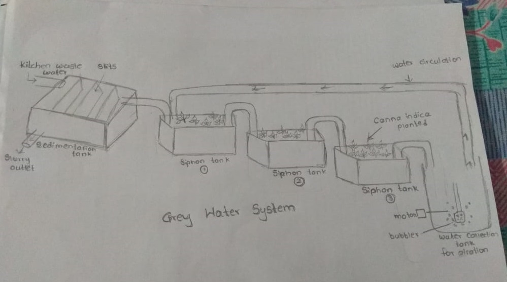 Fig. Sketch of Grey Water system at Vigyan Ashram.