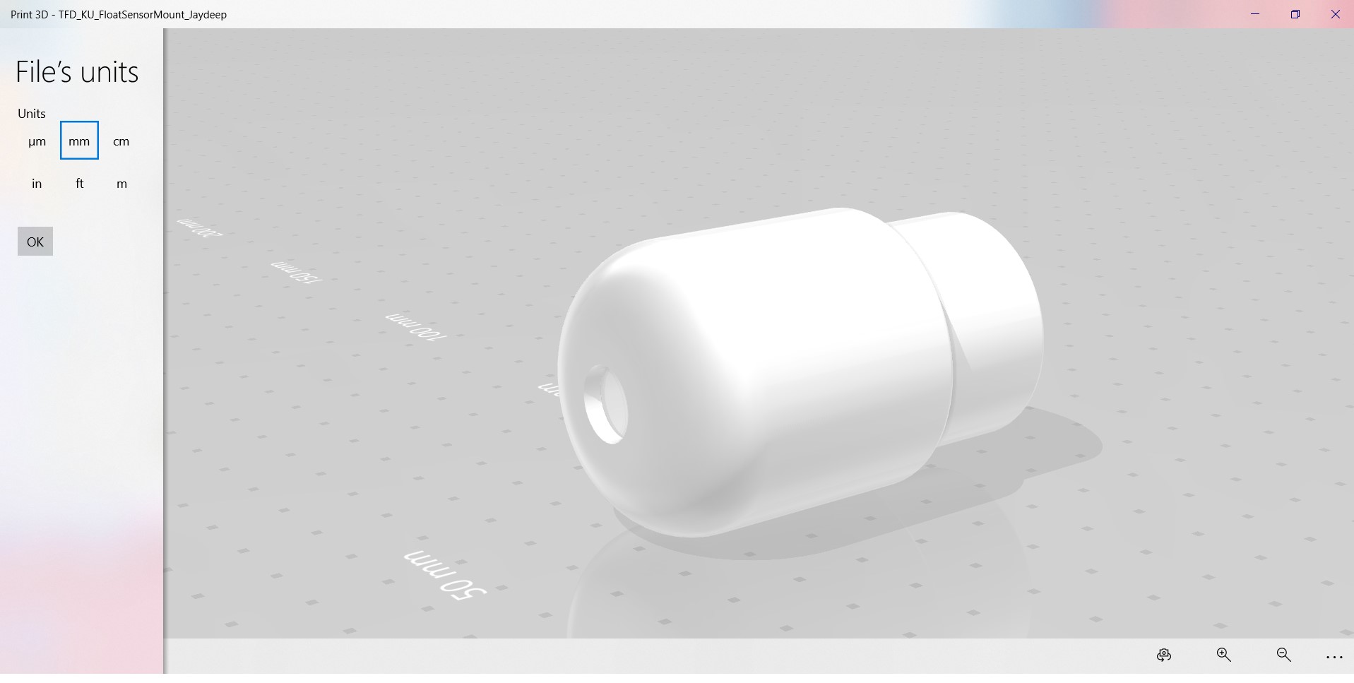 For the float sensor there was a need to design a 3D printed part (case) as the sensor could not be mounted directly.