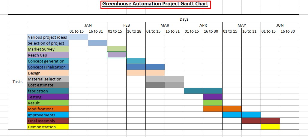 A Gantt chart is a type of bar chart that illustrates a project schedule. This chart lists the tasks to be performed on the vertical axis, and time intervals on the horizontal axis. The width of the horizontal bars in the graph shows the duration of each activity.