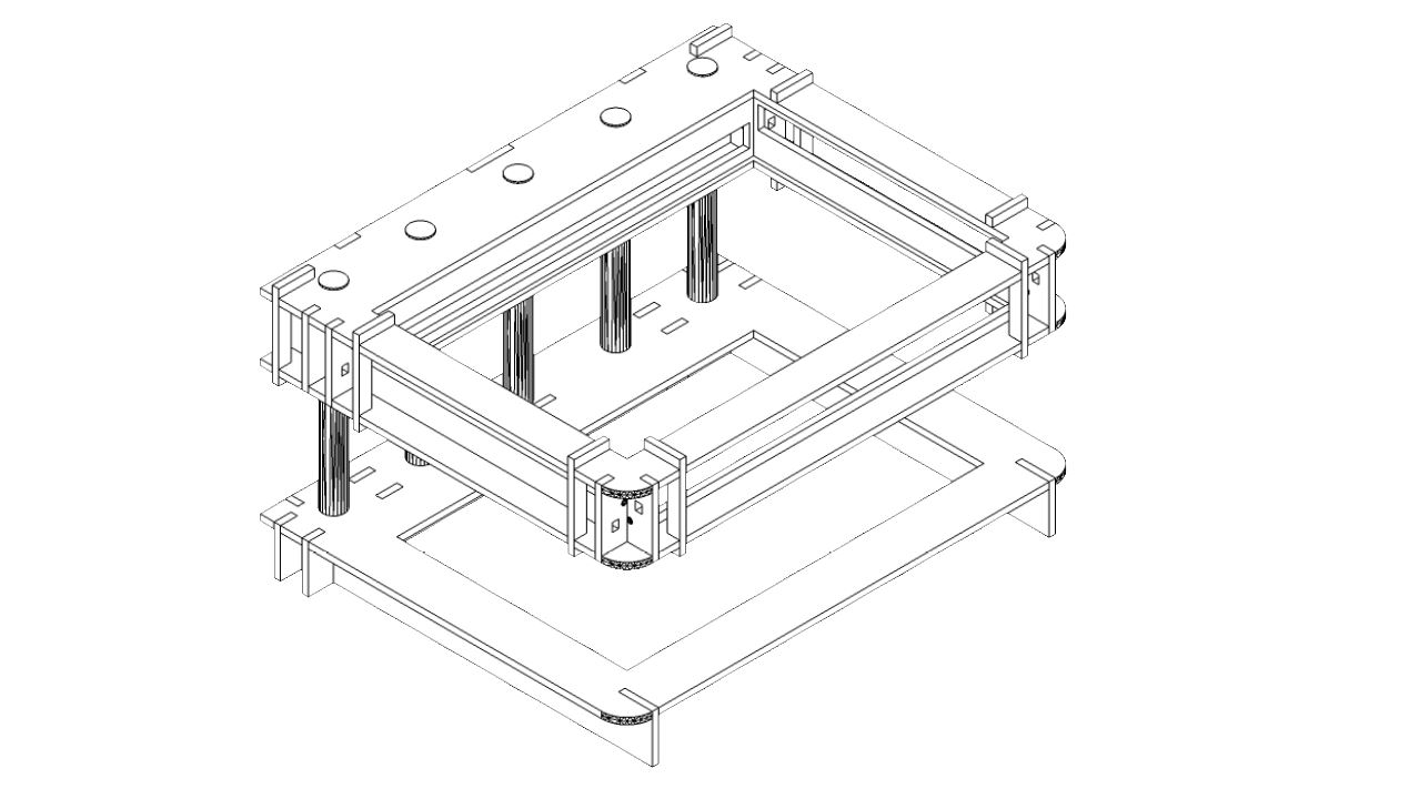 In the year 2018, the second version of Zero CNC was created by the first class of newly created FabLab ZOI. This version reduced the moving head, and used a system made of wood instead of rods and plastic. The idea was that it was going to be an easily transportable machine, as the rods and pieces could be removed and (along with the central motors) transported in luggage. The pieces of the “casing” of the machine could then be fabricated on another lab per arrival, as it was a press fit kit.