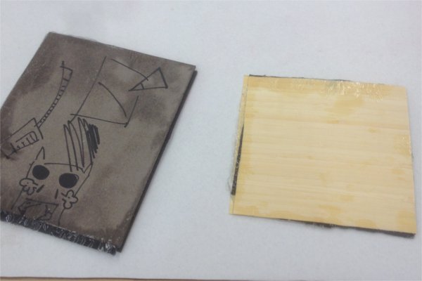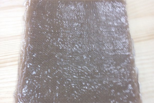 This week we finally got our hand on the bio-resin!I immediately made plans to create a composite using matboard and wool fabric. I also used cling wrap instead of a recycling bag and applied with the resin with a rubber scraper instead of a brush.