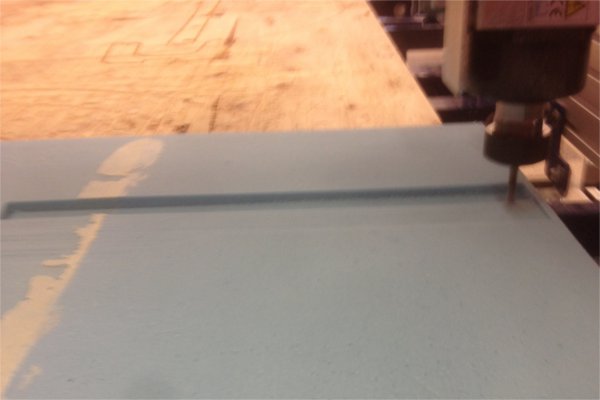 Four hours later it was dry and ready to be cut on the cnc mill. I loaded the block onto the bed using hot glue. I used fairly quick settings on the cnc mill, a feed speed of 80 and a plunge rate of 40. Even then, with a 6mm milling bit, the finishing path was going to take 40 minutes to complete. It ended up taking an hour.