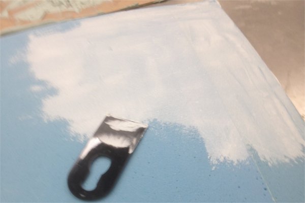 I used polyfiller, an alternative to builders bog that requires no mixing of parts and dries without a chemical reaction. I used the attached scraper to apply a thin layer onto the foam block. In hindsight I might have applied a thicker coat, but for the purpose of a vaccume block it would work.