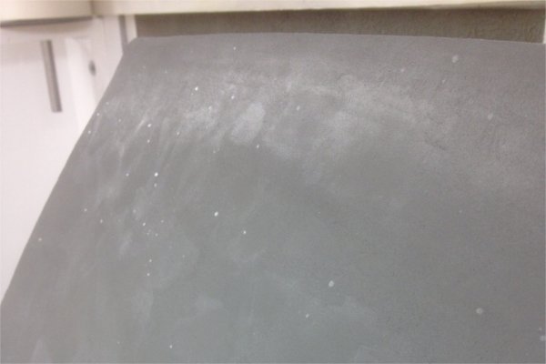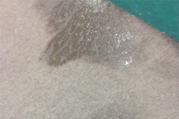 After having mixed the resin well it was time to apply it to the matboard. I layed the cardboard on a handy glass panel that happened to be lying around and tried to work in the resin to the cardboard.