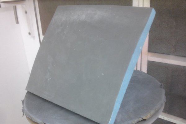 The first step was deciding what material to use as the mold. I couldnt use the press I had already made for the above reason, but also because it might tear the vacuum bag being made out of many pieces of wood. Usually I would create a 3d milled form out of pieces of timber I had stuck together as it isnt that hard to mill and lasts a long time. However I didnt want to spend too much time on the cnc mill, and the longevity of the mold wasnt too important. For these reasons I decided to use a sand based urethane foam (or blue foam).
