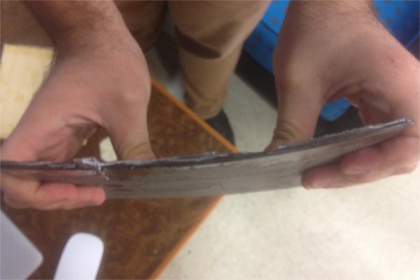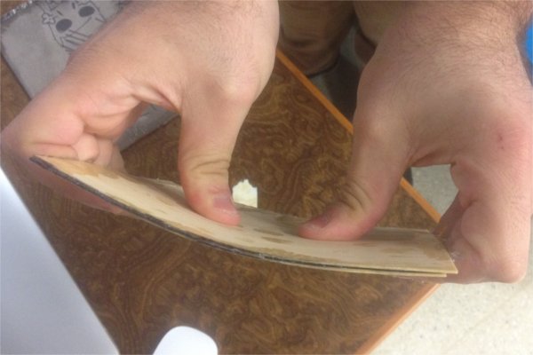 After leaving it to dry for 4 hours I had my composite. The first thing I noticed was that the resin had not properly soaked into the cardboard, leaving patches througout the mixture. However, the composite is very strong and should resonate well, if not with the same character as a timber plane of the same thickness.