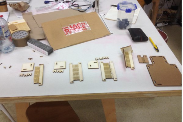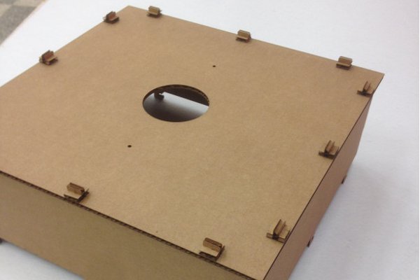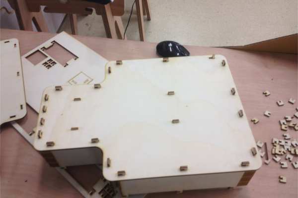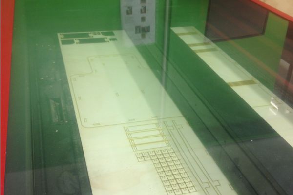 Finally it was time to laser cut, both the music box and the construction kit. The cardboard construction kit used 4mm corrogated card- and used a single pass of the laser cutter with the power settings of 65%, speed at 12% and a PPI of 315.