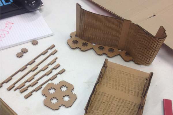 I started by looking at the work of the other fab academy students for their laser cutting assignment. Sungeun Lee is fab academy student from Seoul. He looked at organic shapes and connections, particularly of the zipchaise and methods of bending MDF. I also was inspired by a project sitting in the Wellington fablab done by a group of university students last year.