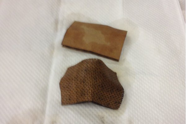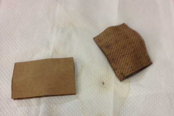 The normal piece was much harder to bend, but dried quicker and retained it rigidity after drying fully. The crosshatched pattern did bend much easier, but never fully dried to the same level of structural composition as when it was dry. Overall, using cardboard (with the corrugations going in a straight line) with water just weakens the structural integrity of the corrugations, making it less suitable as an acoustic material. I will need to do further experimentation with this process.