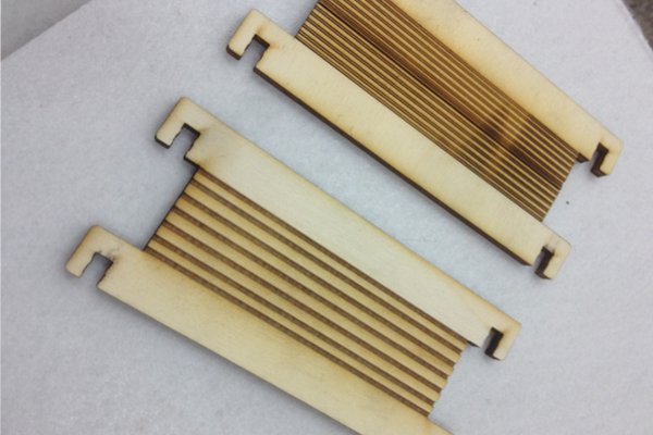 I started with experimenting with using laser engraving and rastering to create a living flex joint with 4mm poplar ply. Long story short, it did not work at all and it would be better to try again with a small cnc mill