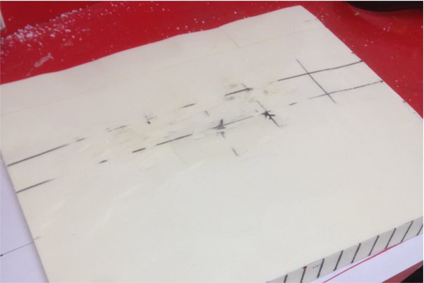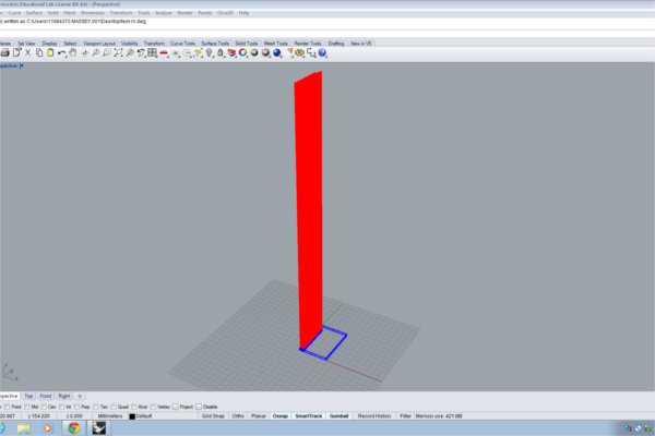 After cutting and glueing my torsion box press, I moved into try to get the exact compound curve for my skin on the laser cutter. In rhino, I drew lines (0.25 mm) across my curve and mapped out the shape of the curve, on 2 dimensions. I then tested this out on the laser cutter using the same settings as before for my engraving. One of the problems was that small parts of the matboard were ripping of the face of the matboard where the distance between engraving lines was too close. To prevent this on my future models I decided to decrease the amount of lines to engrave and use a speed setting of 11%.