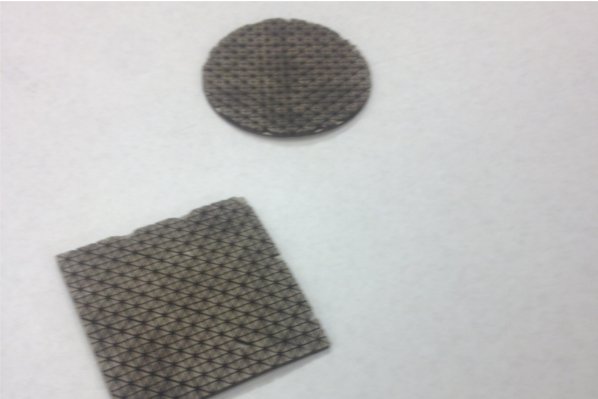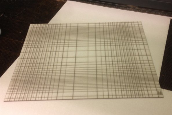 I used engraved lines in 2mm matboard to create compound curves in the otherwise planar material, using a power setting of 20% and a speed setting of 10%. It is worth noting that the material would only bend on the two directions of the cut lines, good for rectangular material but not so good for circular material.