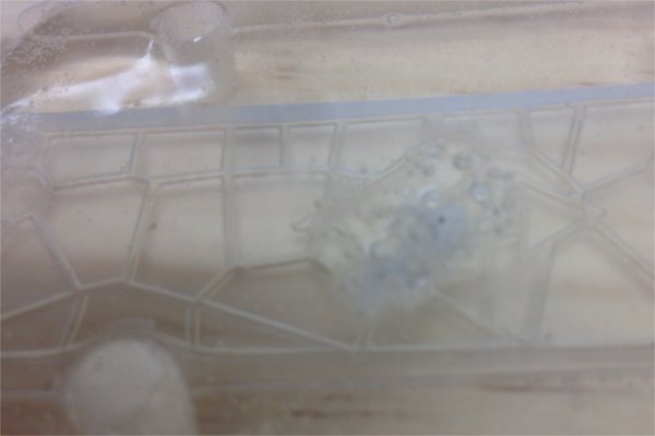 Moving onto the silicone, It was quite hard to accurately measure how much mixture was going into the mixing container. After mixing the two parts, the mixture was full of bubbles. Having a vaccume chamber to get rid of these bubbles was essential. The water test showed me I needed 140 grams of silicone, but after applying, I found that this was not enough. I applied some more silicone, (the hour working time for the silicone I was using allowed me to do this, otherwise I would not recommend) to hopefully make a workable mold.