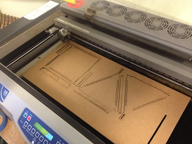 The second part of the assignment was to produce a press-fit construction kit. To do so I we used the laser cutter at the lab. It works with a computer at the side which has Corel Draw and only Corel Draw may be used to make the driver work correctly. CD can easily import any PDF file and it has been known that it is the best file format when trying to export for this particular laser cutter.