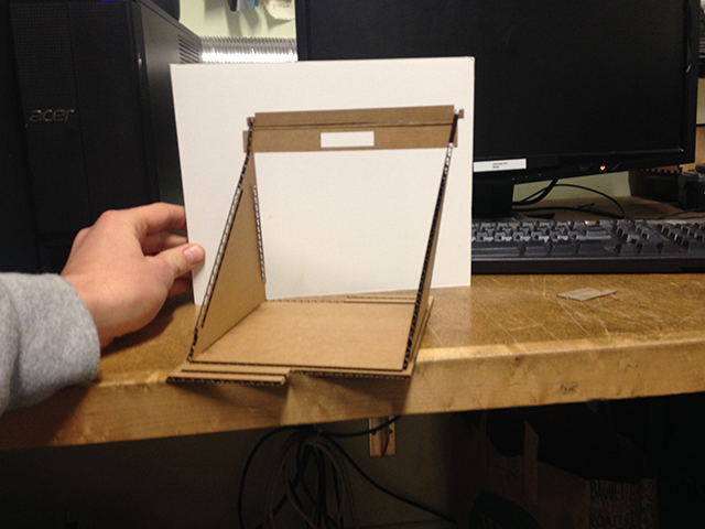 Other than the burning, the problem this time was that I didn't make sure that the focus was set correctly before I sent to cut my material. My friend Siron had been cutting with a thinner material and therefore had been using the cutting bed some fractions of an inch above the cardboard material I was using. This makes for a huge difference! The result was a very shaky assembly attempt: