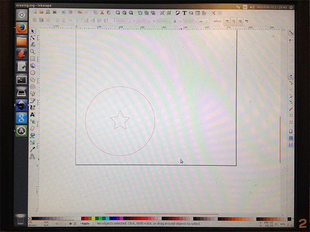 The computer attached to the Roland Vinyl cutter uses Inkscape and it is almost always already loaded with an open file with a page the size of the width the cutter can handle. So the best thing is to import your file. I imported my PDF and positioned it towards the bottom-left corner, because that is how it prints! From bottom-left to top-right. Also, the line has to be a "thin red line". By thin, it has to be 0.5pt or less: