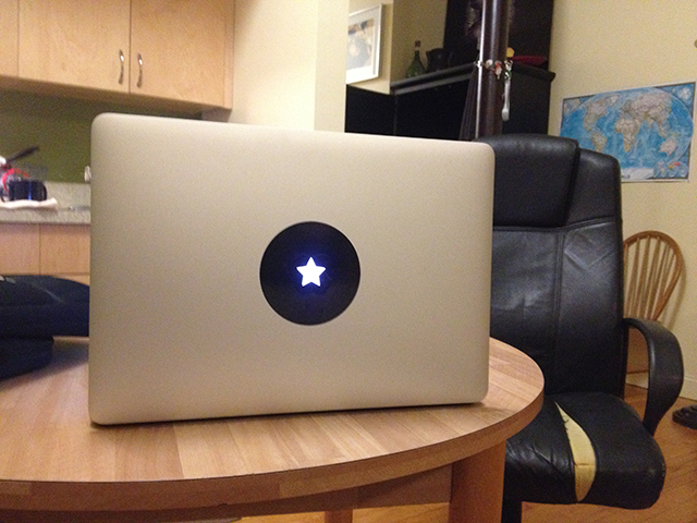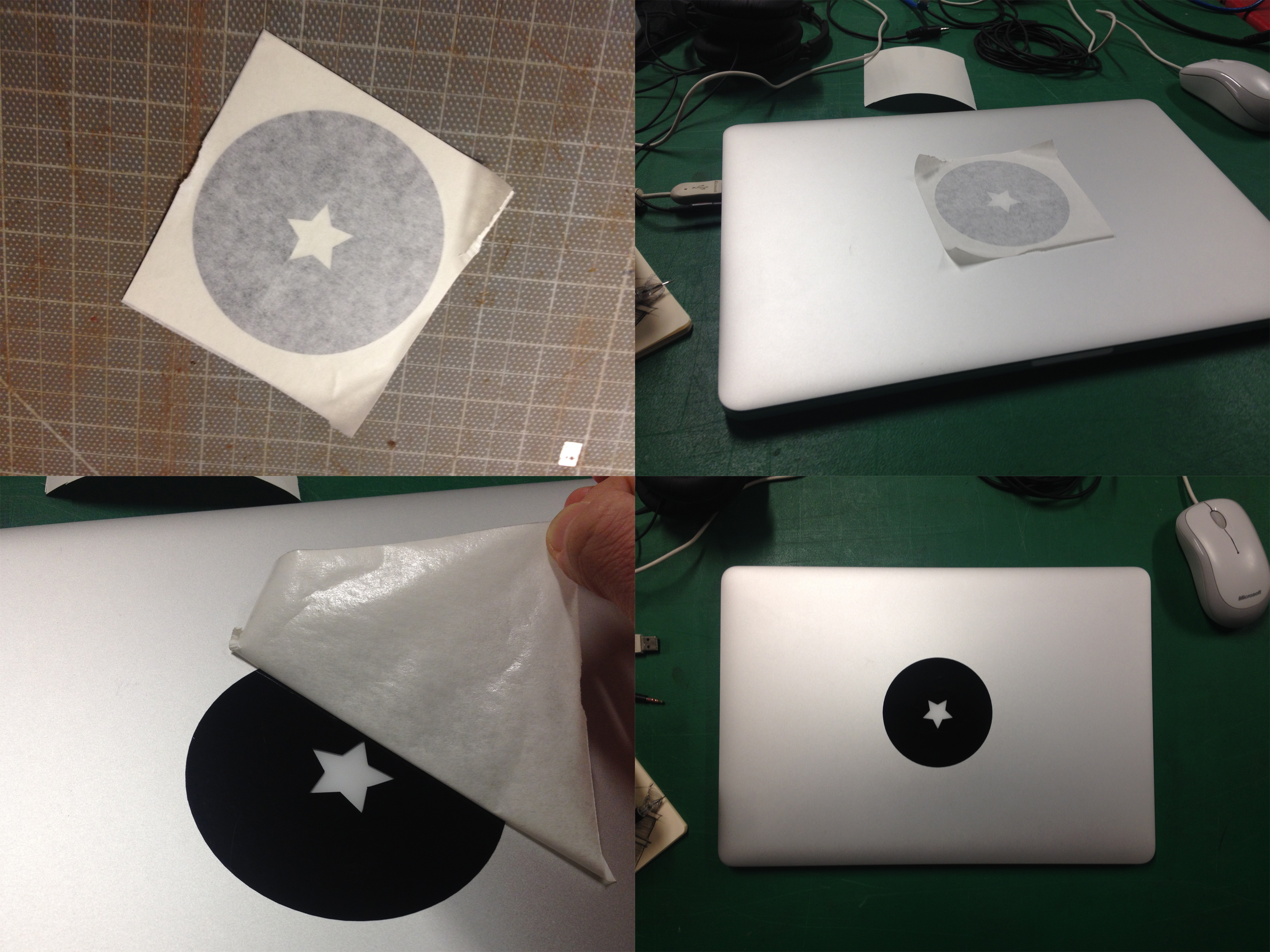 The vinyl cutting part was fun and I did a star for my computer, I downloaded an apple logo so I could know the dimensions so that the star would shine entirely through the apple. I used Adobe Illustrator for this.