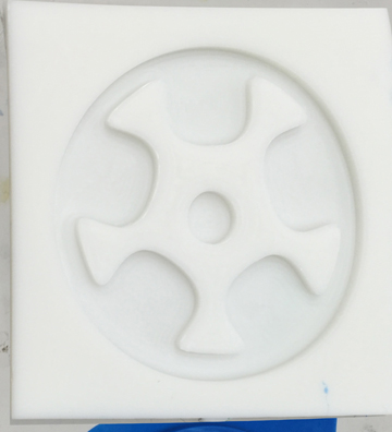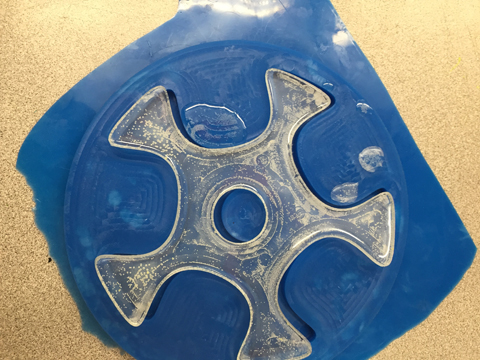 To cast from the shopbot mold I followed the same process as before with the laser cut shape that I outline above. I won't redocument that process again, but the final outcome is shown here in the photograph.