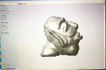 Troll HeadBecause I had an .stl file I thought it would be comparitively easy to get it into vcarve and create a mold to cast from. I was wrong. The Learning curve on Aspire was very high. I found the troll.stl file was really rough and orienting it on the surface of the work was hard. I tried to sculpt it down using Aspire's modeling tools, but I ended up making a real mess of it.