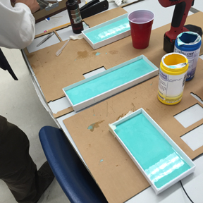 1. The next step was creating a box to make our Molds in. We did this two ways. We used the laser cutter to make molding boxes and also used the art rooms mat cutter. Both methods worked well.