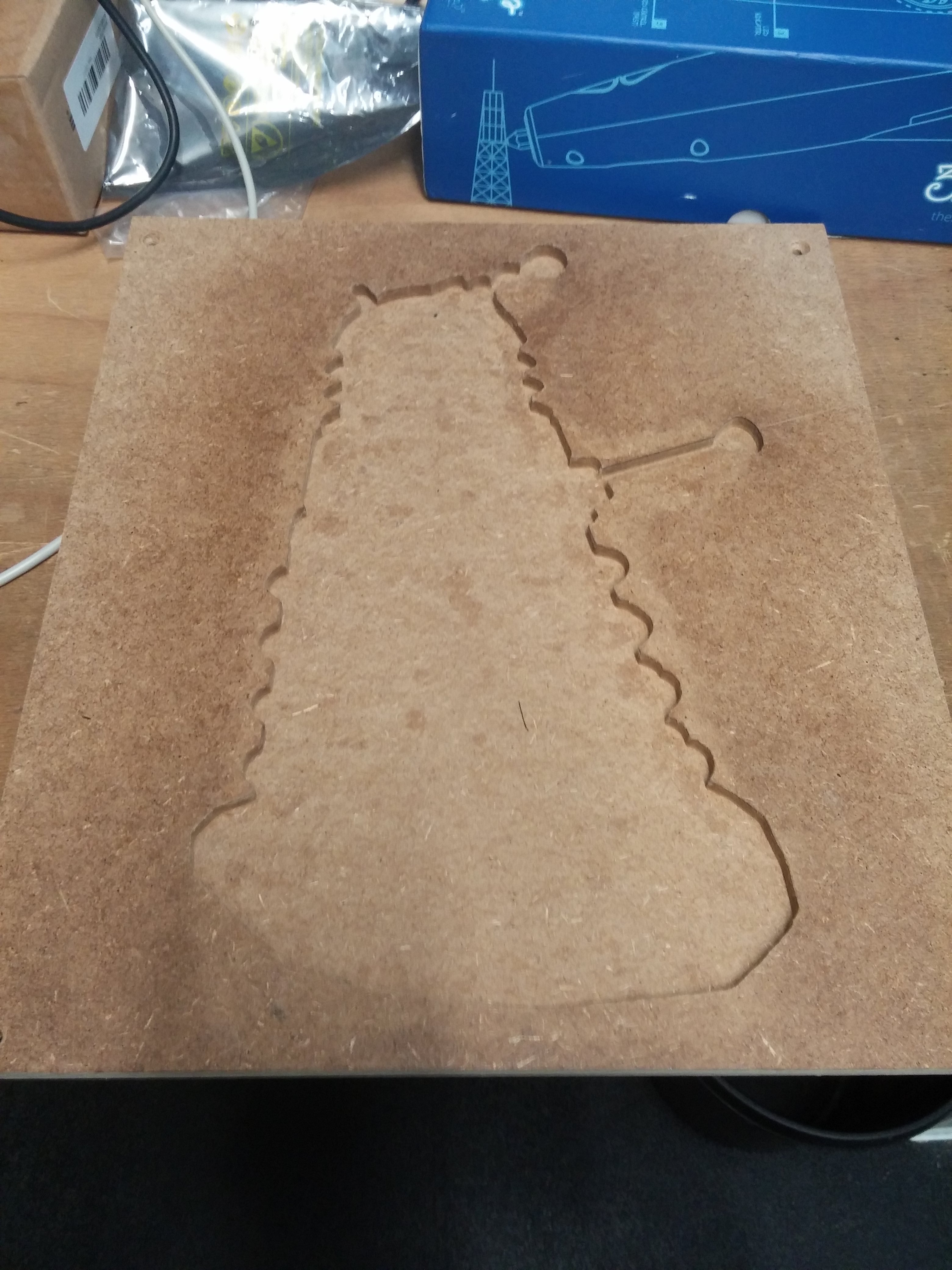 For this assignment I took an image of my final project and made a vector graphics of it with Inkscape (svg file) and exported that to a .dxf file. The softwar CamBam was used to generate the G-Code file which creates the path for the mill. The software Mach3 for the (Stepcraft-2/420 Desktop CNC System)milling machine lets the user change several settings. I used only one drill (6mm endmill with 2 flutes) for the whole process since there was no need for high details. The feed was 1400mm/min with a rotation speed of 20,000 rpm. That is because this is the mold for exercise 07 composite. Furthermore I adjusted the depth per run to 6cm such that the one run is sufficent which saved 10 minutes. I also decreased the overlapping to reduce the required time furtehr by 3 minutes. In the end it took 7.25 minutes.