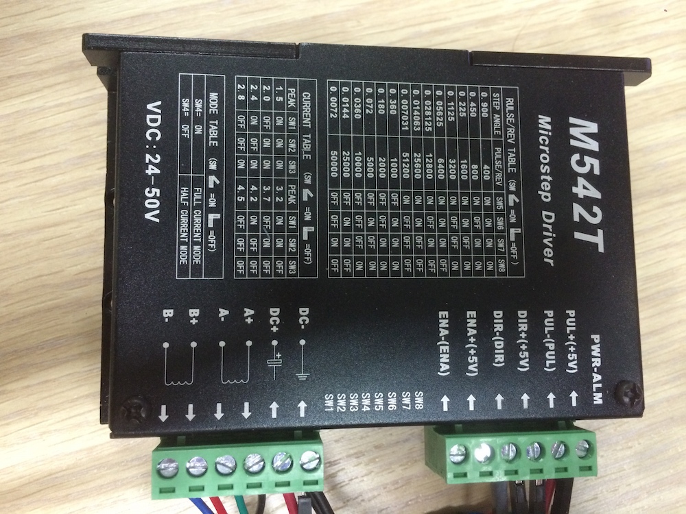 I used a large Nema 23HS30 stepper motor and a driver M542T.