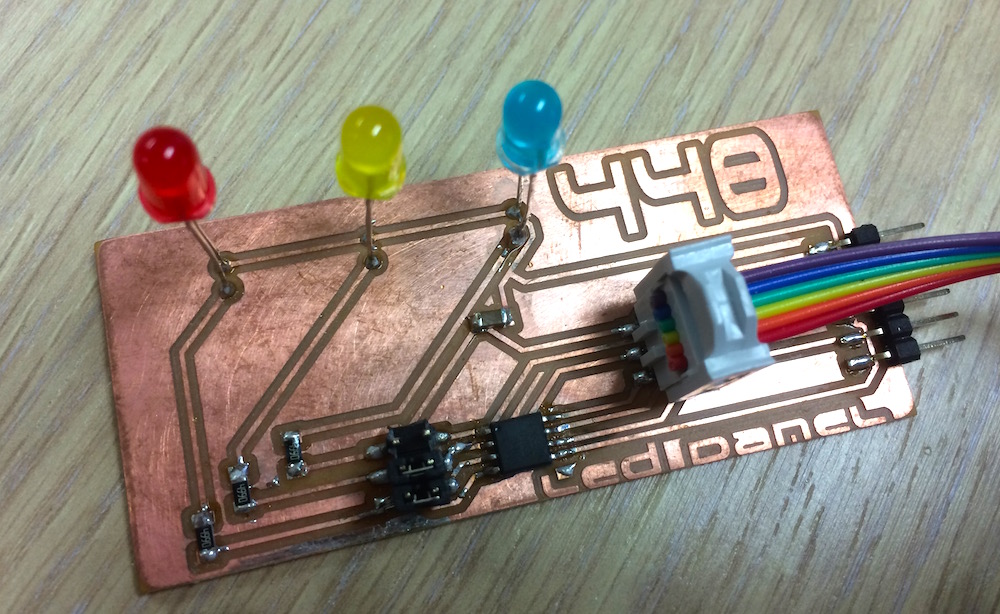 NB: The Blue led was a little bit more shinny than the others, in the final project, I had a 500 ohms resistor to this led, the three diodes have same level now.