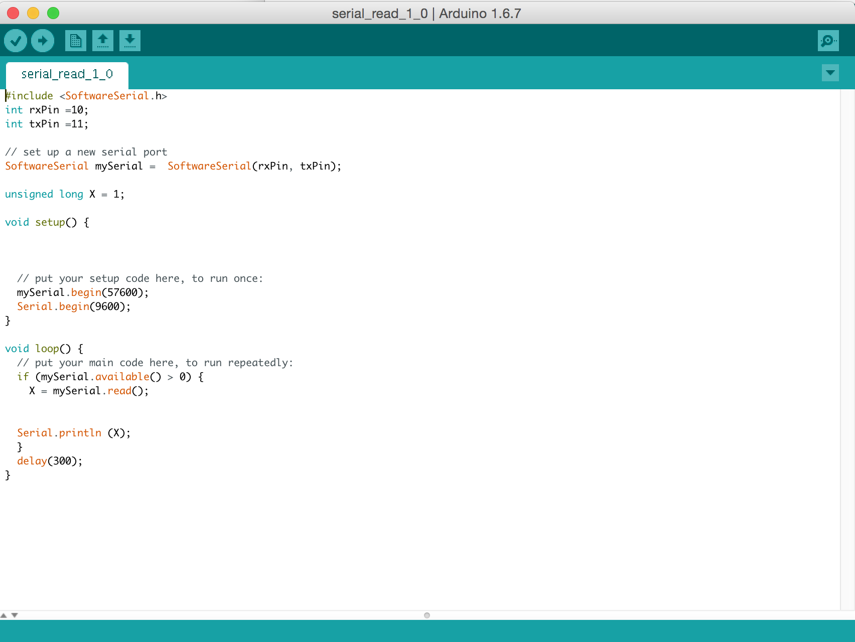 Serial TX connected to A1 analog input, if signal is present the Yellow led is ON.