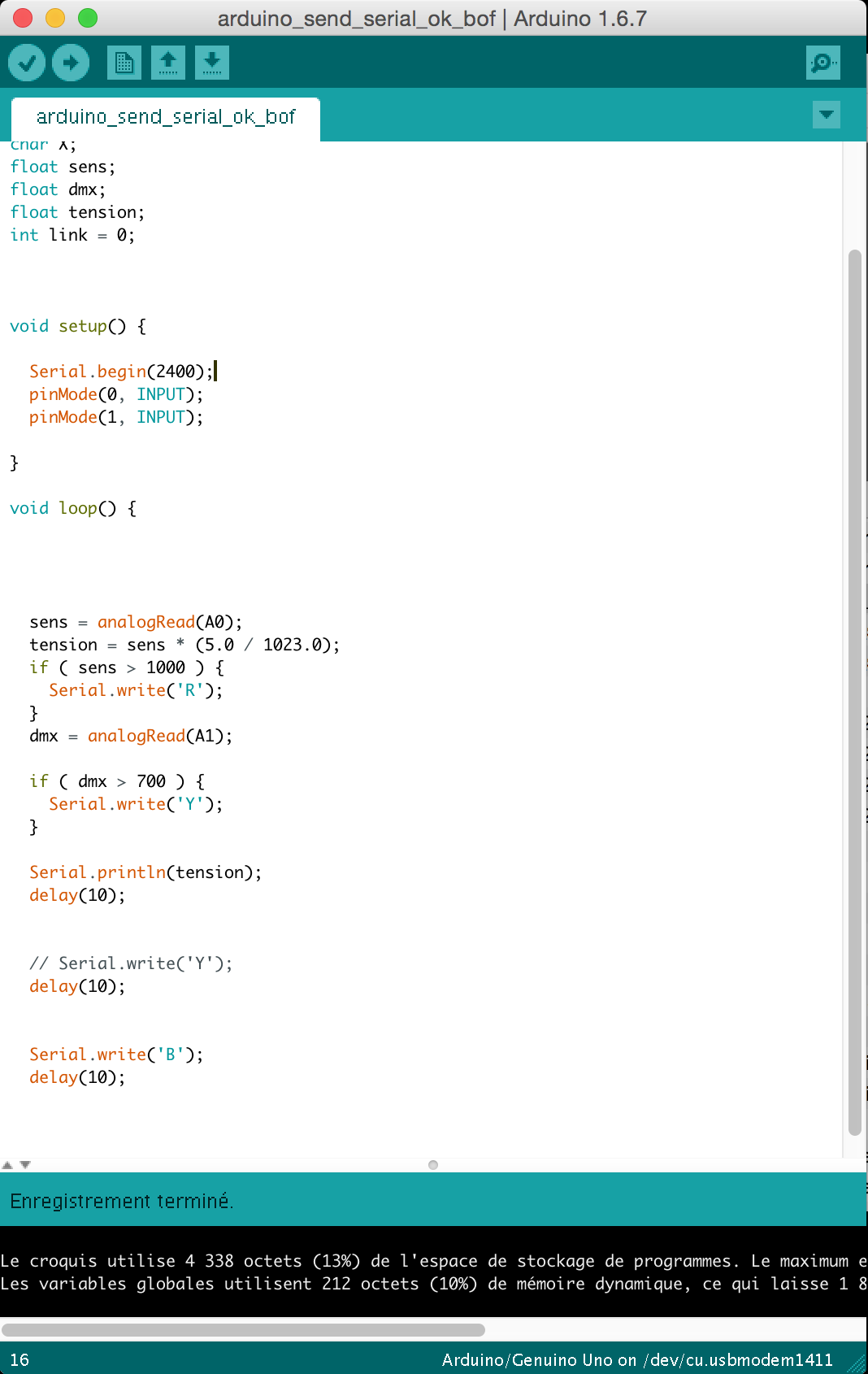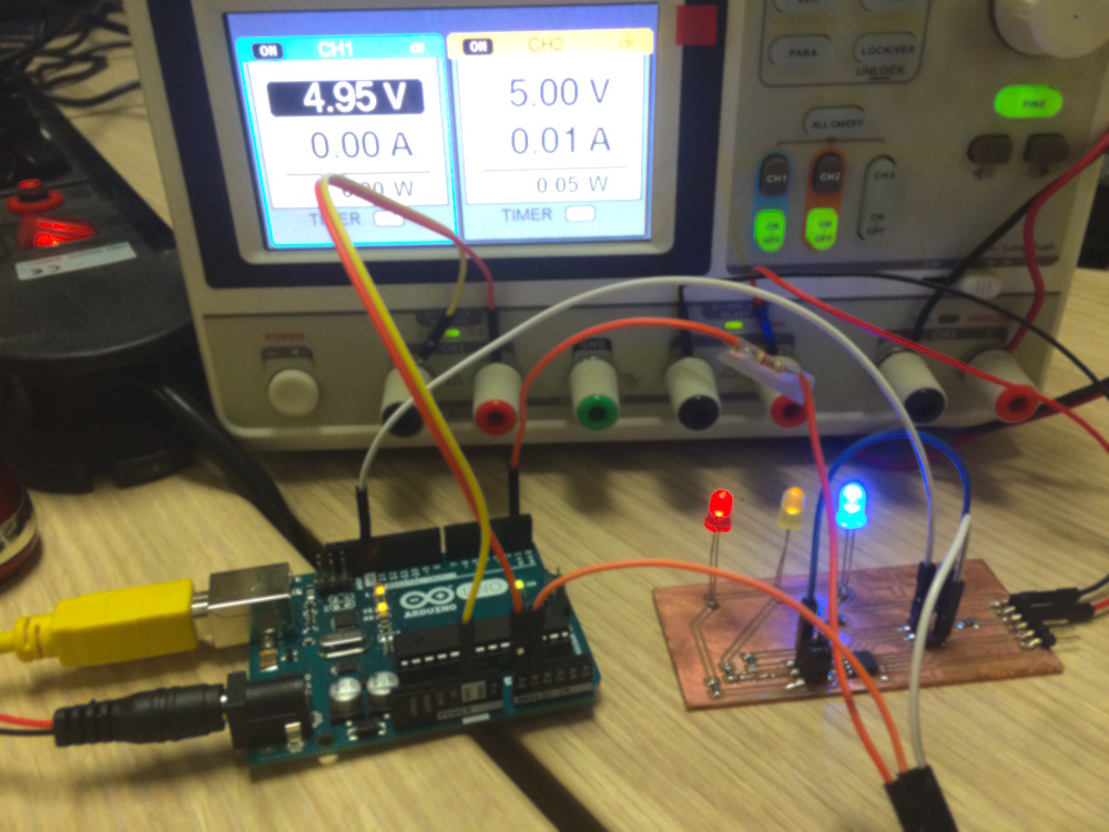 I didn't want to take risks: as my own Hello Arduino was installed in my final project, I used a commercial Arduino Uno to make some tests.