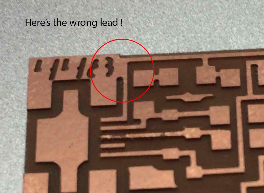 I cut the lead with a cutter, and tested again the board. Sadly there is an other issue...