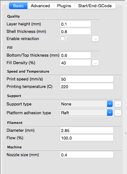 CUra, which is the software to controll 3D printers.size of the printing, printing speed, which is around 50-100, temperature of the extruder, which is around 220, and finally add supporting layer preventing the object to move during the job.controll window and raise the temperature of the extruder.printing speed and other settings; size of supporting parts and such. In addition to that, you have to choose correct machine to print your work because expensive printer can print more precisely and quickly compared to reasonable ones.A) Shoot Out Test - Tower