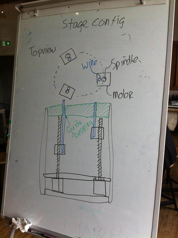 First, we had to decide the whole structure of our project. Regarding the main body, what was the issue was what structure was the best. After combining the idea and functions, we got the idea of using glassfibre rods which will be moved up and down by the supplied lead screw motors. The rods will form an arm which maybe can push up or out some form of answer cards.