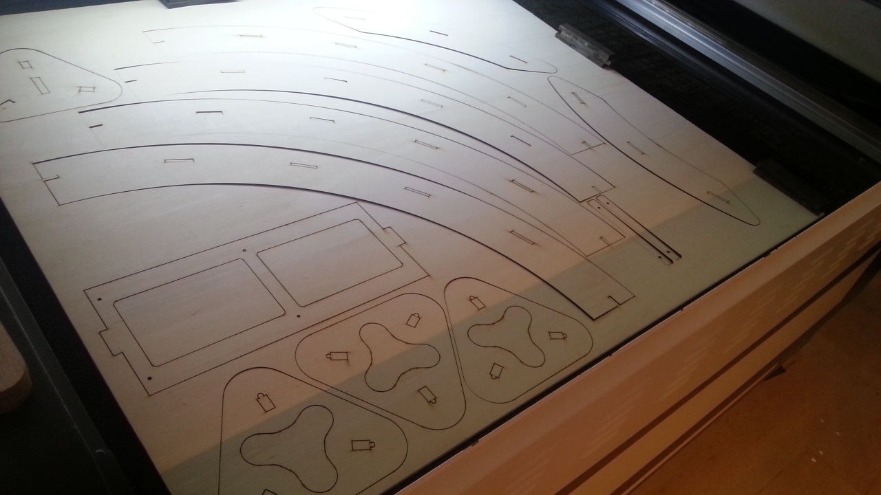 We used 6mm poplar plywood, which Sander bought. The wood sheet was a bit wide, so I examine the several setting of the power/speed of cutting and found the appropriate setting for cutting them.