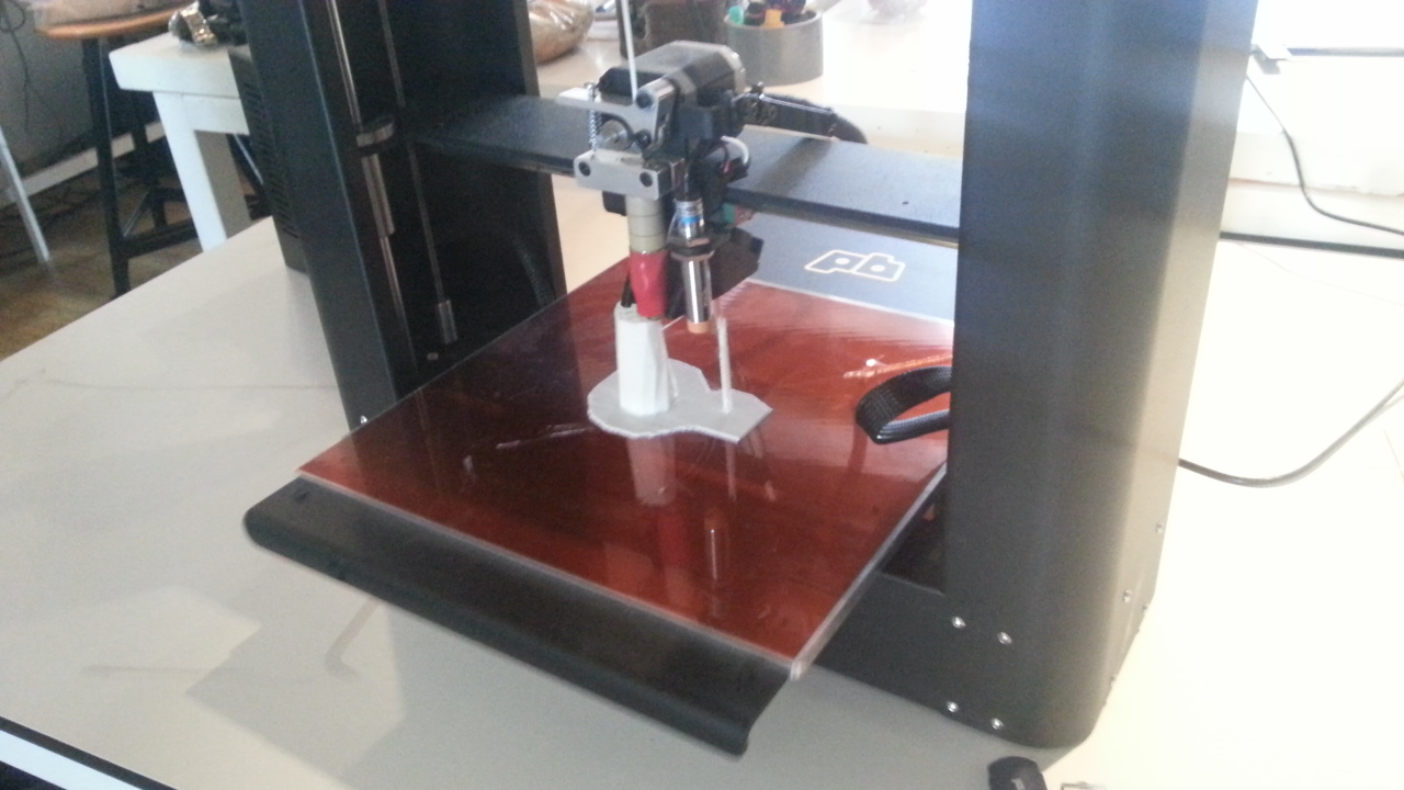After finishing printing, we had discussion on the hand again. The 3D printed hand seemed to be a bit fragile to push the sticker part on our arch. Also, the printed hand was unstable because it was too light to push other things. Considering the result of this test, we decided to reject the idea of using 3D printed hand.