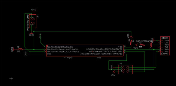 I discovered some problems when I tried to program ~ had not traced the circuit well, so I added a jumper to rectify. Still didn't work, so I eventually did a total re-design. It's the redesign that's in the files above.
