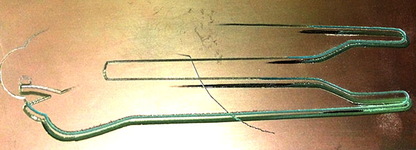 I carefully milled another based on a -1 offset design. I started w a cut depth of .1 and sent the file a total of 3x, going down 0.5mm each time: cut depth of .15 and cut depth of .20. The unevenness meant some parts got milled totally while others were just barely scratched, hence the minutely increasing increments on the "z."