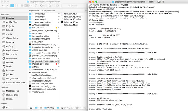 sudo chmod a+rwx /dev/ttyUSB0R E I S U BPLEASE NOTE: After milling, I forgot to use steel wool and dish soap to clean my boards. I soldered directly. I was having a hell of a time soldering, and I think it was both more difficult and didn't work because I forgot this step!!!